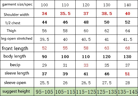 size range: 100/110/120/130/140